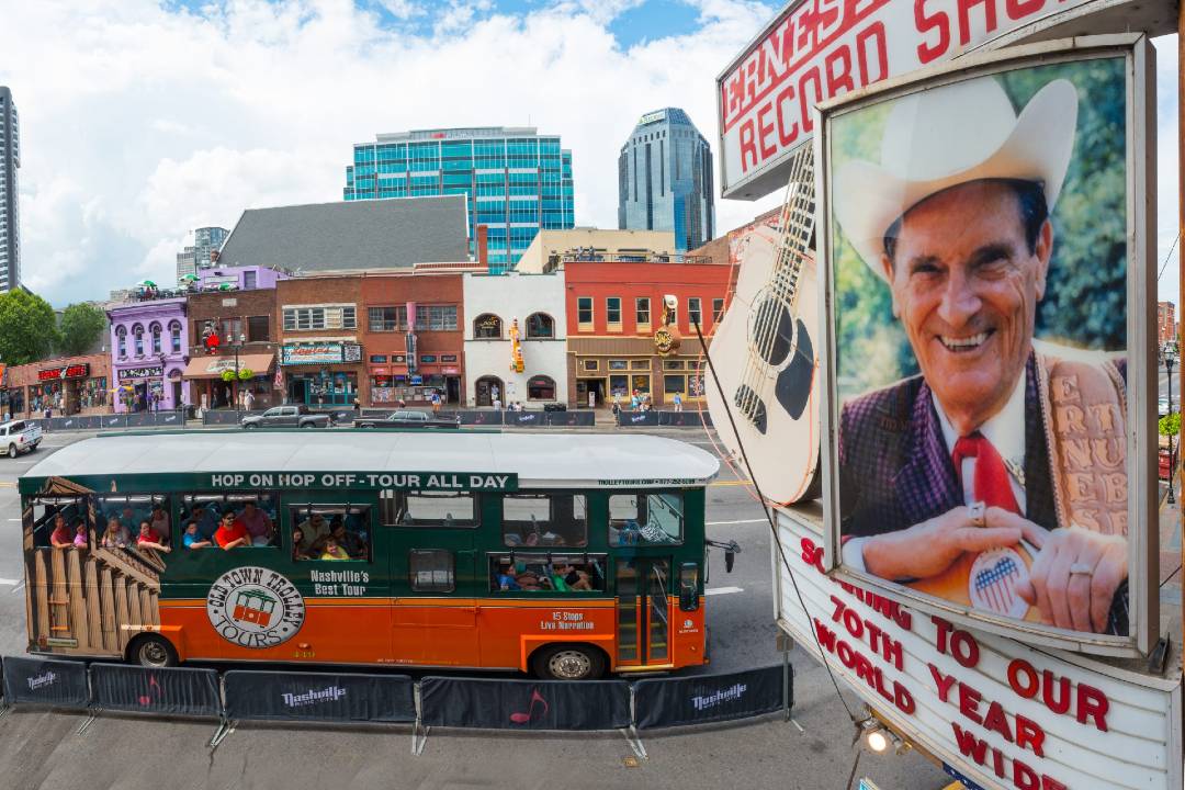 The tour then continues towards the famous Ryman Auditorium – one of the most celebrated music venues in modern music. Choose to hop off or stay on the trolley as we make our way to the Musicians Hall of Fame and Museum - a museum focused solely on country music. Through different exhibits, publications, and educational programs, the museum aims to teach guests about the cultural significance of country music. Nearby is the Walk of Fame Park – a landmark tribute to those from all genres of music. See the iconic stars of legends such as Elvis Presley, Dolly Parton, Kings of Leon, and more!